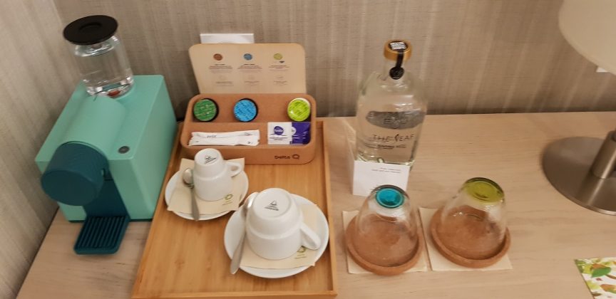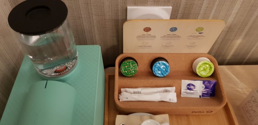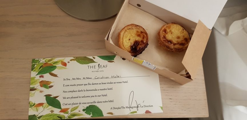 La primire ne aștepta din partea casei o sticlă de apă sigilată (de sticlă, nu de plastic), două capsule de cafea și una de ceai, și două „pastel de nata”, plăcintele lor tradiționale…