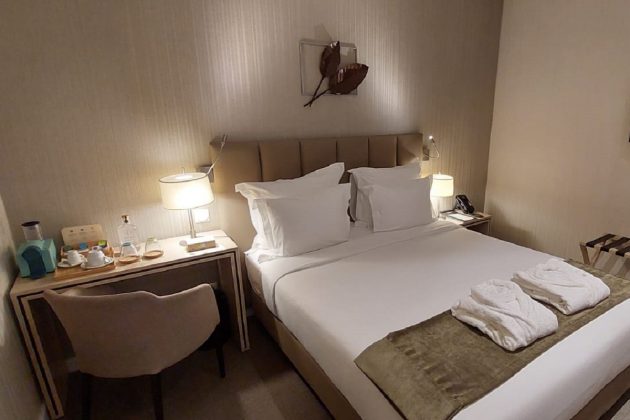 Scria pe booking că dimensiunile camerelor sunt foarte mici. Deși am avut o cameră dublă simplă, nu aș putea spune așa ceva. Este adevărat că nu am avut 3-4 trolere după noi dar, și dacă am fi avut, exista un dressing generos care le-ar fi putut adăposti cu succes. Deci nu putem să ne plângem de dimensiunea camerei…