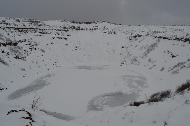 Între Thingvellir și următoarea oprire, Craterul Kerid, ne-a prins o furtună de zăpadă care a durat cam jumătate de oră. Dar am crezut că nu scăpăm din ea. Brusc, după cele 30 de minute, ninsoarea a încetat și cerul a început să se lumineze. Așa că, în ceea ce privește vremea în Islanda, e mai imprevizibilă decât în Scoția. Aici chiar este după cum ți-e norocul…