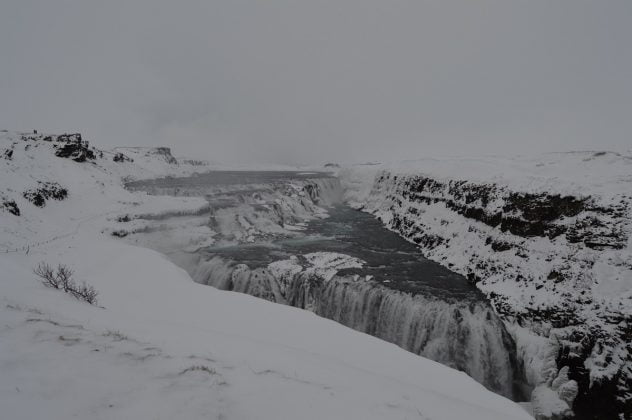 Următoarea oprire a fost la cascada Gullfoss. Dacă la Kerid am fost dezamăgiți de cum arăta iarna comparativ cu ce știam noi despre el din pozele de vară, altfel au stat lucrurile la Gullfoss. Este superbă vara, dar iarna… nu există cuvinte pentru a putea fi descrisă. Este maiestuoasă, impresionantă, incredibilă. Odată ajuns pe marginea ei la punctul de belvedere nu poți să nu te întrebi dacă există cu adevărat.