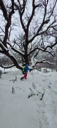 Lapovița a continuat pe tot parcursul zilei, la fel și vântul. Riadul este unul frumușel și, în mod normal, ar trebui să ne ofere şi o panoramă frumoasă, însă azi nu prea ne vine să deschidem ușile. Am ajuns uzi fleaşcă, apa trecând de toate hainele „de firmă”… Toată după-amiaza am stat în jurul unui godin pe butelie, într-o sală mare de mese pe unde cam sufla vântul pe la toate geamurile. Mai este o sobă pe lemne în altă sală, unde fumul a inundat toată camera… Şi uite-aşa testăm şi ceva condiţii de supravieţuire 😀