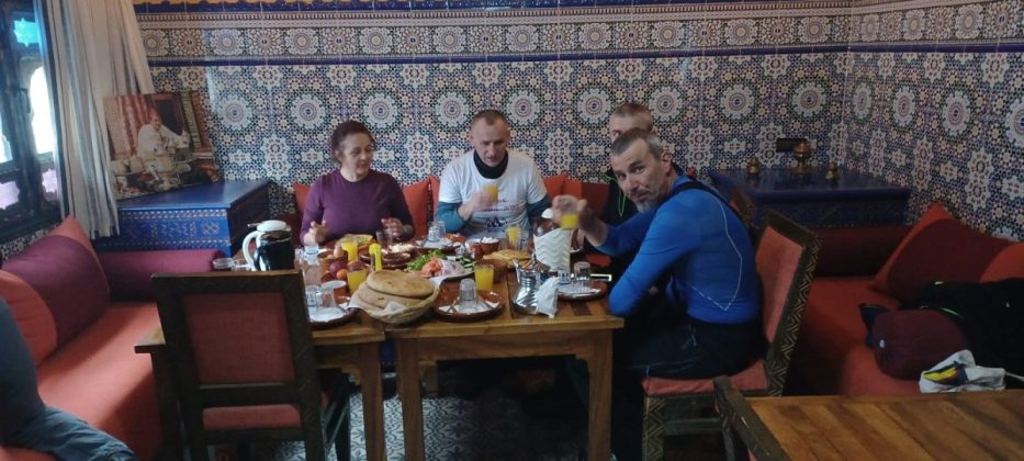 În toiul nopții sau cel puțin asa am apreciat noi ca fiind (în realitate, era ca 06.30) a fost dată alarma din difuzoarele minaretelor pentru rugăciunea de dimineaţă… Acesta este un alt şoc pentru turistul aflat în prima sa expediţie în Maroc şi care nu are idee de obiceiurile locurilor. Când auzi alarmele în „creierii“ dimineţii, te întrebi, în primă fază, dacă este cutremur, alarmă de război… Și, astfel, am luat o pauză de la somn. La 07.00 a «cântat» și alarma lui Adi…altă pauză de la somn. 😀