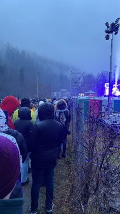 Te-ai fi așteptat, ca pentru un festival la Azuga ce are loc la începutul iernii, să fie amenajat măcar un loc în care poți să stai să te încălzești, dar singurul loc mai ferit de vânt era lângă zona în care băieții de la sunet și imagine lucrau într-o structură improvizată.